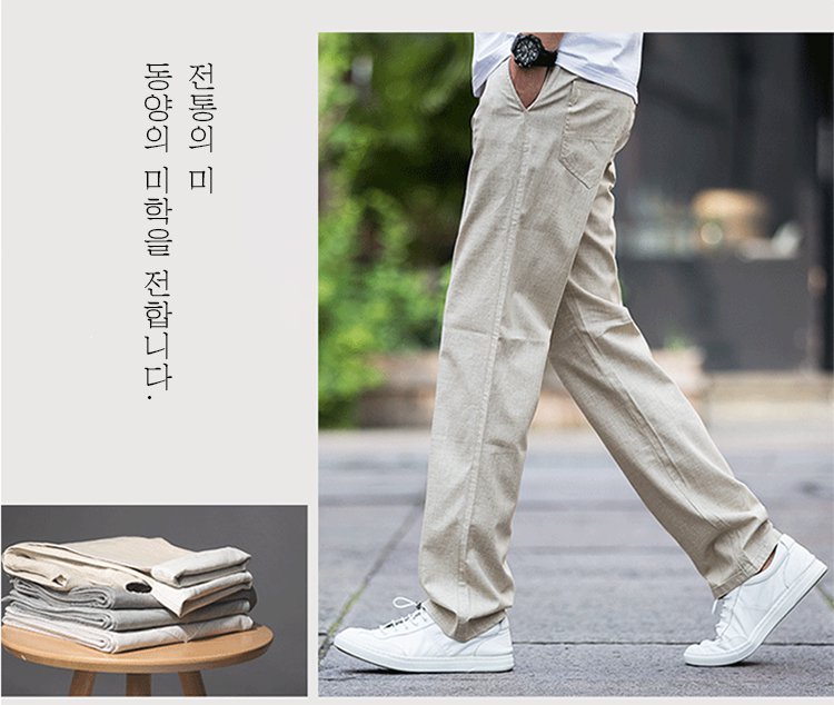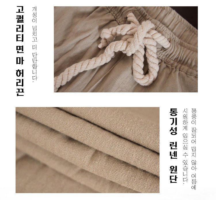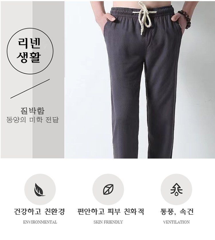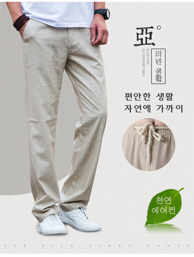 루즈핏 얇은 남성 면 린넨 캐주얼 팬츠