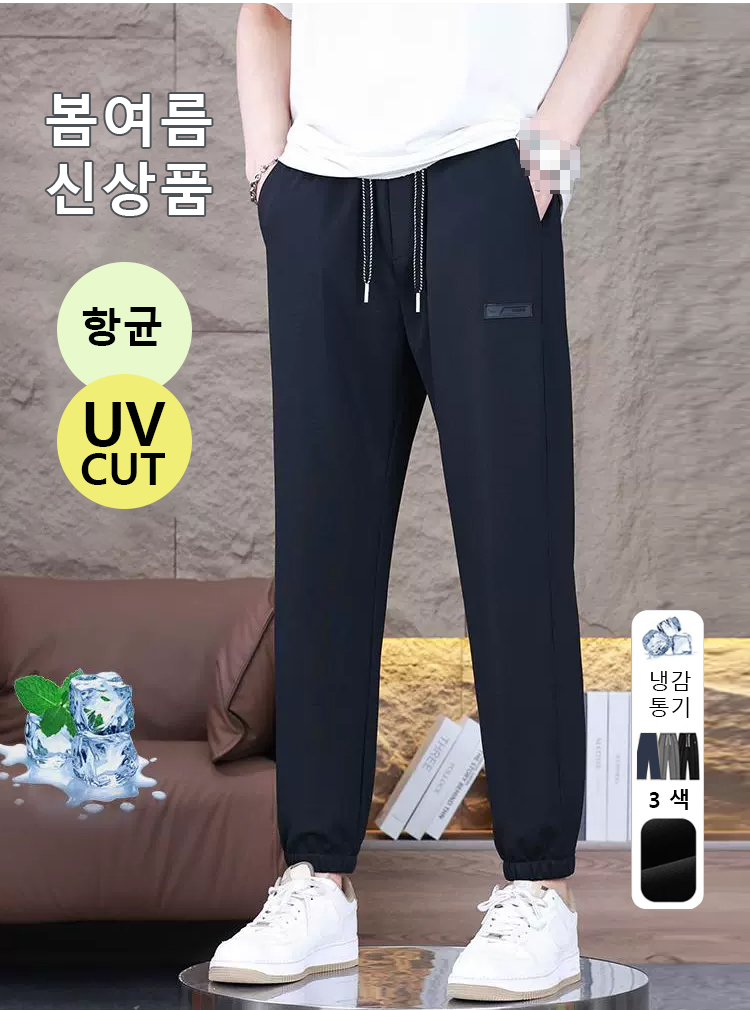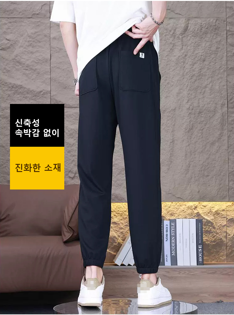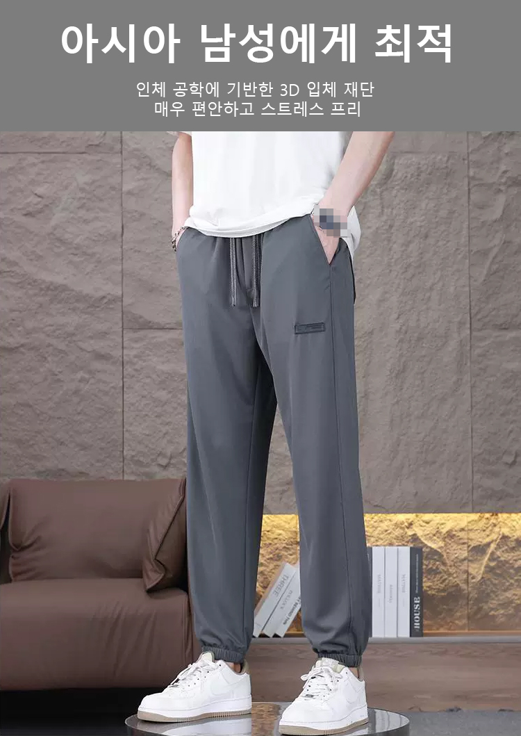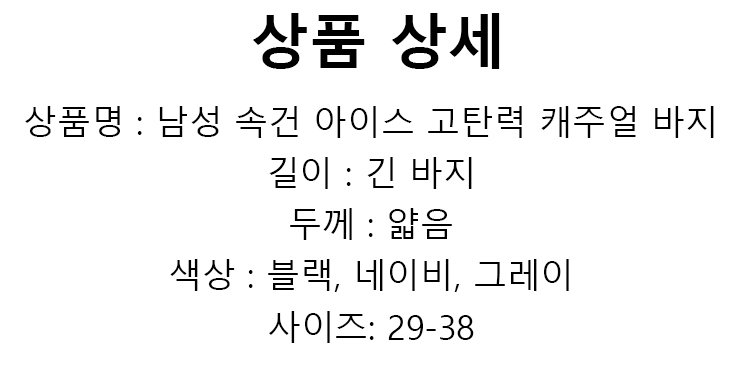 남성 속건 아이스 고탄력 캐주얼 바지