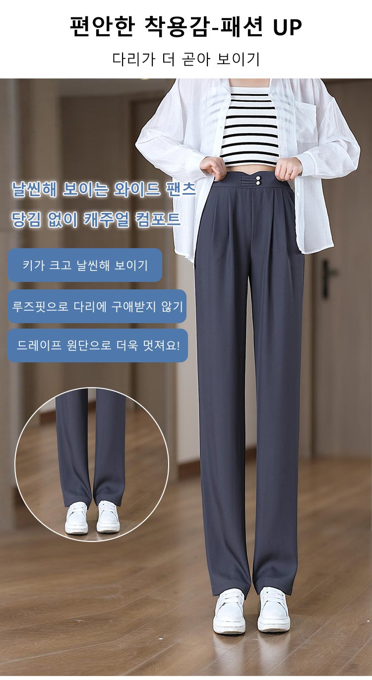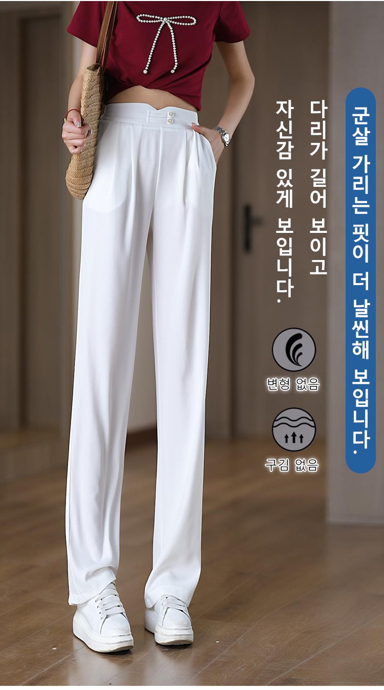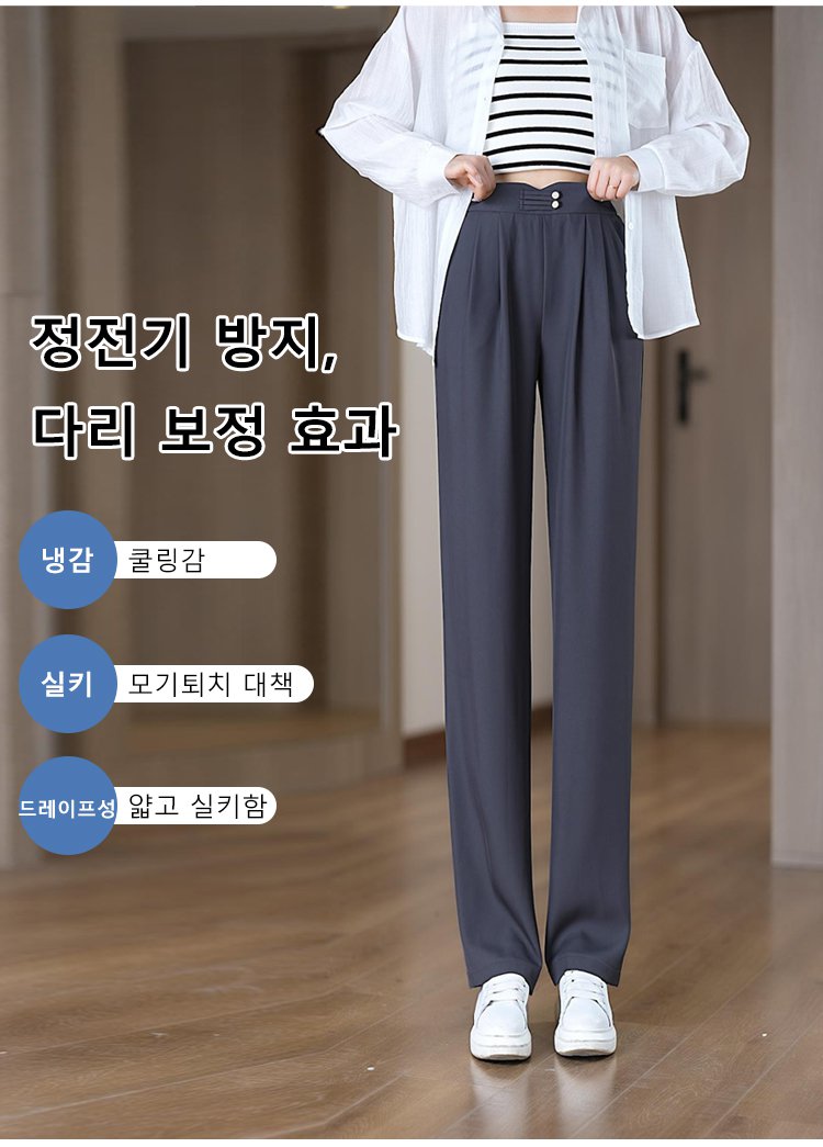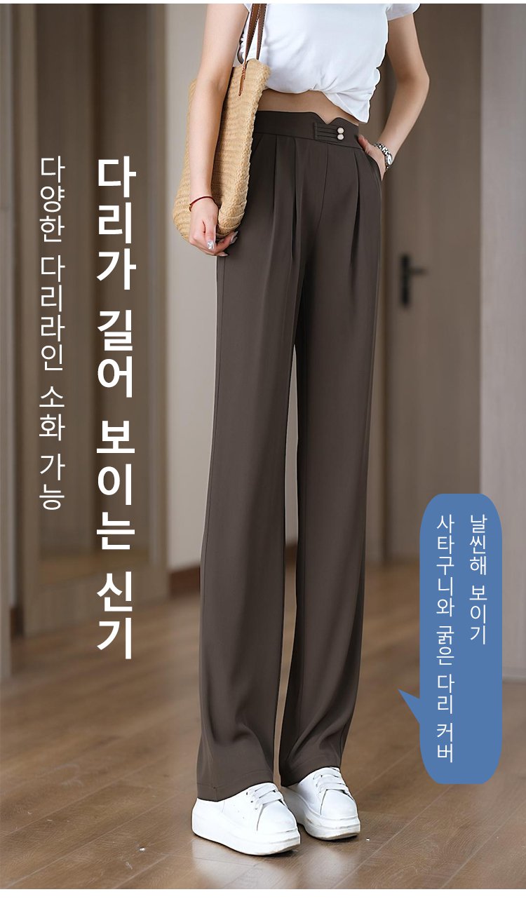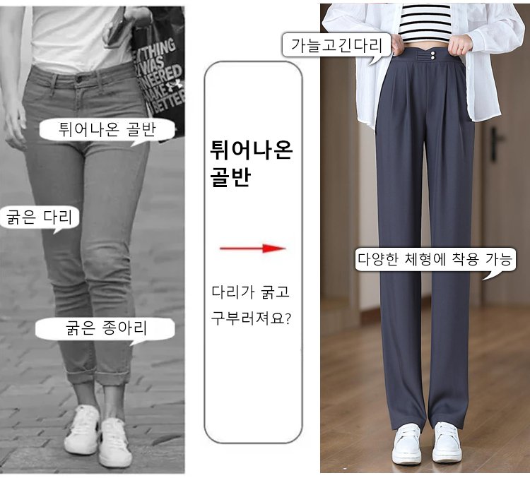 "이 바지는 다리가 자연스럽게 떨어져 주름이 잘 생기지 않으며, 다리 모양에 상관없이 허벅지와 종아리의 단점을 효과적으로 가려주어 곧고 길어 보이는 시각적 효과를 줍니다. 현재 50% 한정 할인 중이며, 여러 개 구매 시 단가가 더 저렴합니다. 또한, 14일 내 무조건 반품 및 교환이 가능합니다. 놓치지 마세요!"