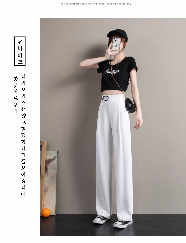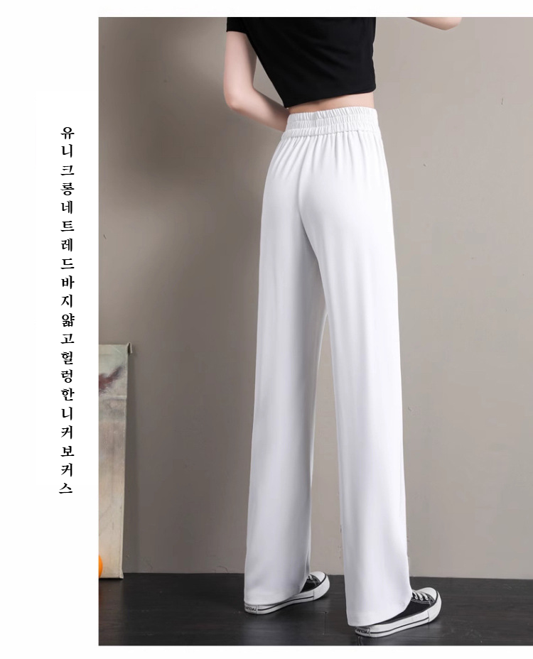 빅사이즈 봄 아이스 정장바지 날씬해 보이고 하이웨스트 슬림핏 드롭 일자 와이드 팬츠녀