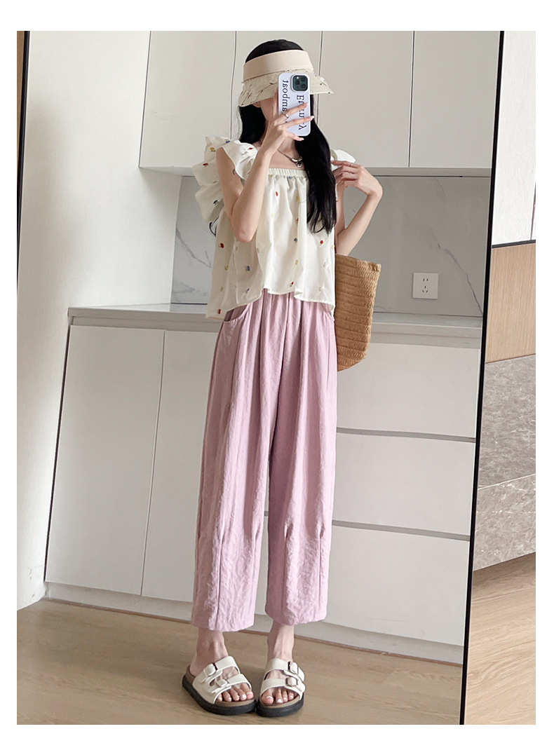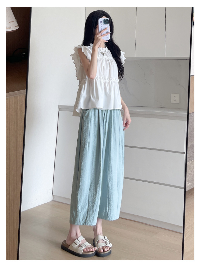 여성 여름 얇은 캐주얼 팬츠 와이드 9부 배기 팬츠 아이스 할머니 팬츠 하이웨스트 와이드 팬츠 캐주얼 팬츠
